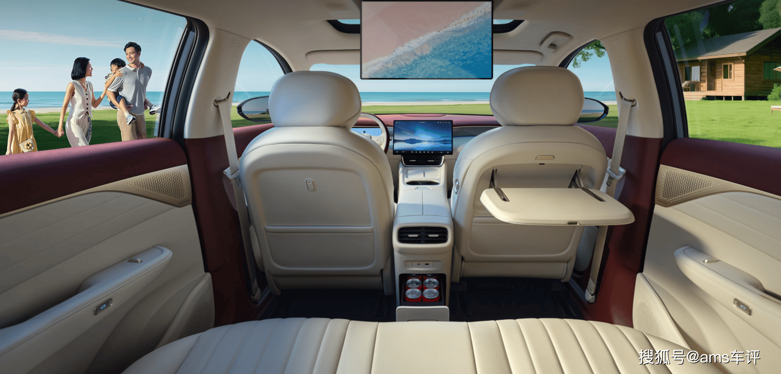首先,2800毫米的軸距+寬敞的后排腿部空間,甚至可以一鍵放平變成“大床模式”,對家庭用戶特別友好。