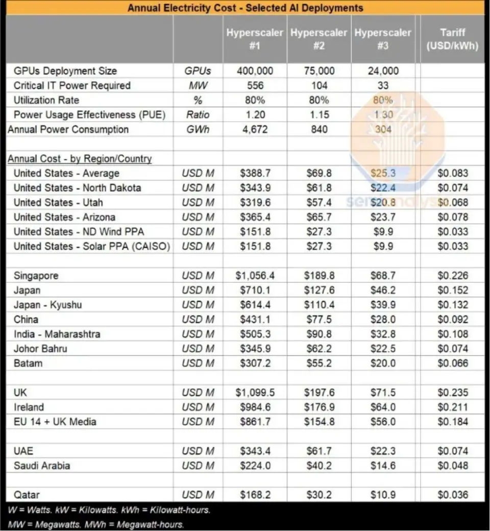 根據(jù)SIA發(fā)布的全球電力成本報(bào)告,沙特和卡塔爾的電價(jià)比美國(guó)平均電價(jià)低40%-60%。即使是電價(jià)稍高的阿聯(lián)酋,也低于美國(guó)平均水平。