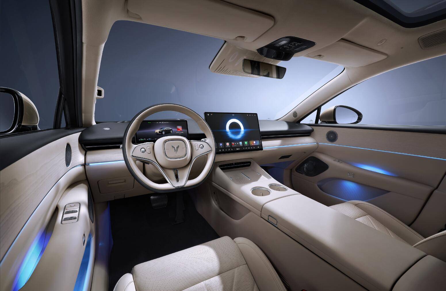 尺寸方面,長寬高分別為5130/1966/1500mm,軸距達3020mm。車內的亮點是該車型搭載HarmonySpace 5鴻蒙系統,配備HUAWEI ADS 4智駕系統。動力方面,該車搭載1.5T增程器。
