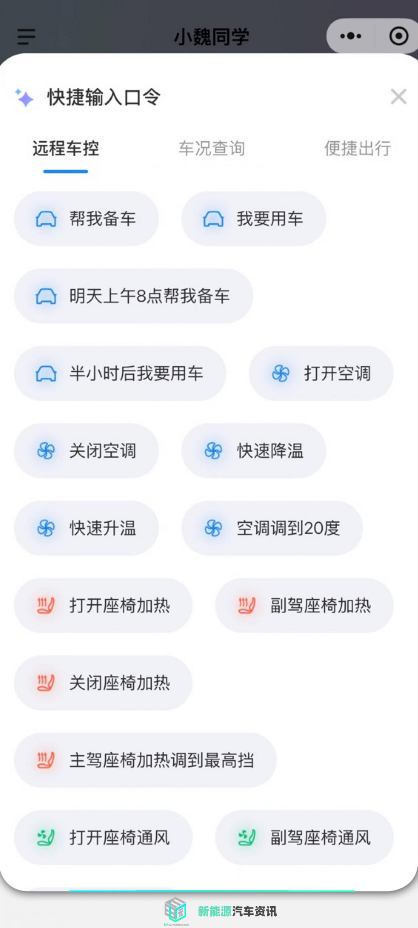 小程序遠程車控時,上車即可出發。上車之前,用戶可通過小程序一次性讓小魏同學提前打開座艙空調、空氣凈化等功能,還可以提前發送想去的地址圖片,小魏同學識別后導航至目標地點,提升了出行前的準備效率。