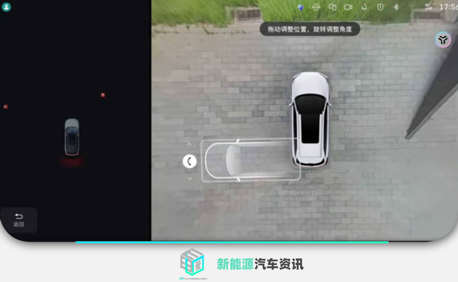 新版本還新增自定義泊車方案,可智能識別合規車位。用戶只需在車機HUT界面上拖動車位框,即可預設泊車位置,系統智能識別并完成泊入。